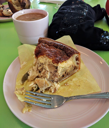 Today I tried out the sandwich of the day (turkey, bacon, mozzarella, marinated tomatoes!), the veggie-goat cheese quiche, and the lemon blueberry pie. Split it all with my co-worker, who remarked "Thats the best thing Ive eaten in a month!" She was right. And lunch was about $7 for each of us. I was a little sad they were out of donuts. Guess Ill have to go back.