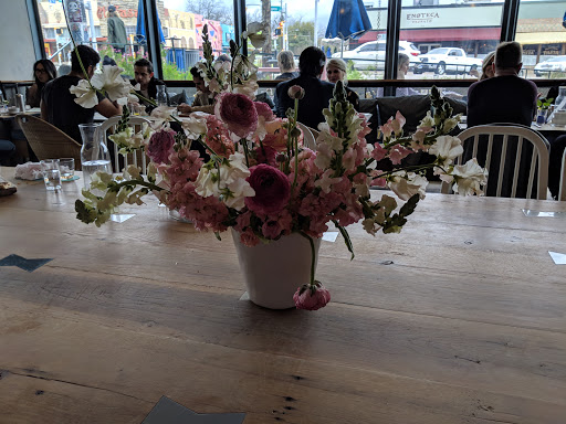My husband, College aged son and I had dinner here on a Saturday night. We ate indoors at the big square community table which had no wait time. Their wait times for the single tables indoors and a different weight time for the outside tables. It was decorated nicely with contemporary art paintings on the wall and the large bookcase with decorative items in it gave it a cozy feel next to those white walls. It is a very clean place and upscale looking. Most of the people were dressed business casual, especially the men and as typical women were mostly dressed up nicer than the men they were with. No this is not a very casual place for sloppily dressed people. I chose this restaurant because I saw online that they had gluten-free options. There are interesting dishes here that you dont find in every restaurant so I suggest you take a look at the menu before you go. There were a handful of things that both my husband and I wanted to try, salads and other interesting vegetable based dishes but we were all craving a burger so I had to burger without a bun because they dont offer a gluten-free bread product, and they also had the burgers. These were upscale burgers, we had the egg on it and the special bacon, it was really really good. You do not get one server assigned to you, the workers rotate. One thing that I did not like was the servers seem to stay in the kitchen except to deliver your food so there was never anyone coming around to check on us. We had a hard time getting anyones attention when we were finished eating. They never offered us dessert. When we finally got the check no one wanted to take the payment. I hate it when youre ready to go and they just ignore you. The food is not inexpensive here, I dont have a problem with that because this is high-quality food and it is not fast food nor is it boil in a bag which is what some of the chains do. This is real food. We will be back and I plan to purchase something that is not a burger and next time Ill dress a little nicer and treat it more like a date night. This is not a fine dining restaurant either though its more upscale than casual but its not fancy fancy food with fine dining service. 5 stars