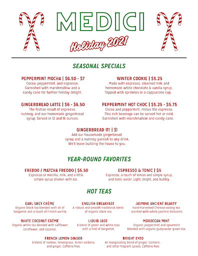 Café Medici is a really good place to treat yourself to some good coffee an conversation with friends. All the drinks are delicious. It is slightly higher than Starbucks prices, but worth it. There is also a cool lounge/loft area upstairs. Its location on the Drag and near campus is convenient too. You should definitely check this place out.