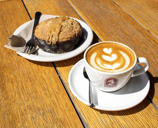 The perfect distance to walk my dog... sit for half an hour in the Austin late afternoon sun... get great cup of whatever looks good... they feed treats to dog... big fan. Cafe Medici was actually recommended to me by my former boss from Houston who deciding upon a career change at 50 thought it would be a great idea to open a coffee shop. When I was visiting two times ago and asked him what it was going to be like, he whipped out the Cafe Medici card and said that he wanted the feeling to be like it. When I went back to Houston last time, he asked me if I had visited Medici. I had not. I think he almost tried to fight me. I decided upon my return to visit. Very glad I did... especially since this reduces the risk of being punched by someone twice my age the next time I go to Houston.