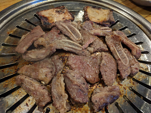 Me and my husbands experience started out bad but in the end we were full and happy! :) We went on a Saturday night so we already expected to be on the wait but the bad thing was the host infront made a mistake and forgot about us, we see all these new comers going in and we were there way ahead of a lot of them and we end up being the last to be called, she asked whats our name and showed her lists and all the names after us were lined(scratched) so obviously she made a mistake by not calling us first, we waited longer and we were there first, we didnt complain at all cause I wanted it to be a good date night for me and my hubby. The waiter we had was a middle aged Korean, I asked how does it works since its our first time since their menu didnt really have instructions how the unlimited works, our waiter tried to explain but we really cant understand exactly what she was saying, so we just tried to order our best. The ambiance was alright, not amazing but its clean so thats whats important. Comparing to Chosun Galbi, I like Chosun Galbis place more. When our food(unlimited meat) came, we were just so hungry and enjoyed it! The appetizers were tasty! Beef bulgogi was good, it was the best put of all the meat choices we had. It isnt outstanding but its unlimited and also decent. So its a decent price for quality and quantity. Ill recommend if you want to eat a lot. Also they change their grilling pans after every finish of meat. Im glad I tried this place but still want to try more Korean restaurants out there though!
