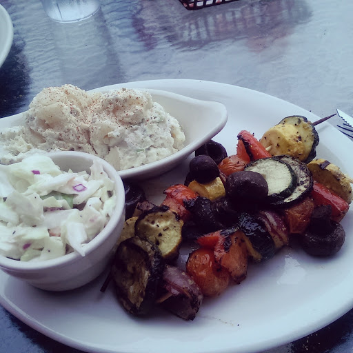 I had a certain expectation from this place and the actual experience was surpassed! From the staff, to the view, to the delicious bread. It was a cold day in December, which meant most people where dining inside. We wanted the full experience, so we dined outside taking in the incredible view. We had a combination of orders. The veggie kabobs had a lemon pepper to them that I still havent been able to recreate on my grill. The combination plate which included; ribs, sides and meats where absolutely delicious. We all agreed that the best treat, was their BREAD!!! We had to order some to go, and enjoyed it on the way back to Houston.