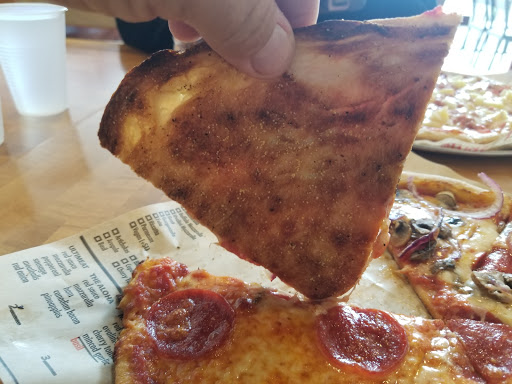 The pizza is New York style. It is light and refreshing and tastes great! It has a very similar concept to subway, where you can choose as many toppings (meat and veggies) as you want for a flat rate. Overall, a great experience and I highly recommend it!