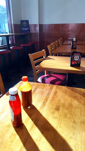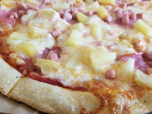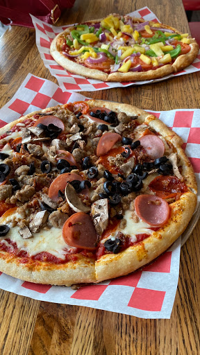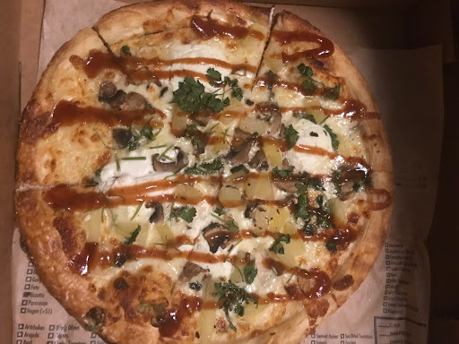 Enjoyed large choice of toppings, the spicy red pizza sauce is a great and is a nice twist to an everyday pizza.