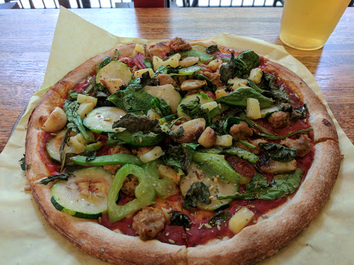 This is your typical quick service, overpriced personal pizza joint. If youve not seen one of these places let me explain. Its like Subway for pizza. You chose your pizza size and dough, then add your choice of sauce and cheese. Add any number of toppings and a drink and in about 5 minutes you have a fire baked pizza. Im a big pizza fan, but there wasnt anything special about this one. It was okay, and in a pinch, I might eat here again. Well, maybe not. The plus side is they have a good beer selection and the service was friendly.