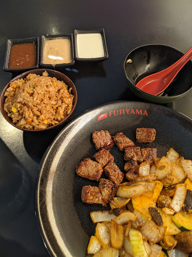 Average hibachi steak house. Our chef did not talk with anyone and didnt do any interesting cooking maneuvers. Nothing wrong with that but it makes for an average experience. The food was okay, grilled chicken with butter, soy, lemon, and garlic. They got confused on the rice order. I ordered white but they gave me fried, and he made a point to say that I ordered fried because thats how it was written up. He may have been having a bad day. The veggies were pretty good but loaded with garlic butter and half of it is cheap onions. Fine if you like lots of onions, but they shouldnt be the headlining vegetable in a side dish. When comparing this steakhouse to the nearby competing "Kobe" steak house, Kobe is much better in terms of taste and overall experience. Fujiyama isnt bad but given the choice between the two, Ill only come here if invited by others.