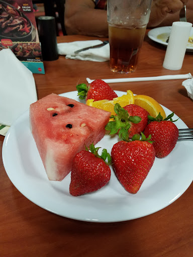 Pros- the pot roast is always awesome!!! I come to this place to eat meat and salad. The meats are always hot, always tender. And the salad bar rocks too. Well stocked and clean, lots of choice toppings for your salad. Cons- all the fried food Ive tasted here is always over cooked and hard. Their big shrimps actually hurt my teeth. Chicken tenders and fish fillets, dry and tasteless. French fries, all varieties, cold and hard. I also dont like the waitstaff (what a joke), they bother the hell out of me. Theyre nothing but glorified bus boys and girls. Sure, they get you drink refills but I dont need them too. I have to get up and get my own food, I can get my own refill as well. Just take away the empty plates (Im up, I can do that myself too) and leave me alone. And leave them a tip?! Forget it. And finally the price. Its good for me (I love that pot roast and I eat alot) but expensive for what it is. We usually go three people at a time and the bill is like $50-$60, thats lunchtime. My teenager eats like one plate and shes done. Such a waste. Overall, I like this place tho. Its clean and new and I love what I get. Bring an empty stomach to get your moneys worth.