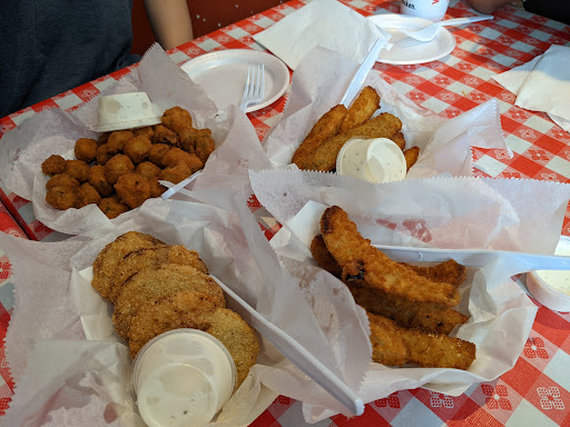 I am not a fried chicken fanatic the way some people are (especially south of the Mason-Dixie line) so, if you are, take this review with a grain of salt or whatever it is you think makes fried chicken the best thing ever. I will start by putting to question this "World Famous" claim because I had never heard of this place until it was suggested by some other Yelpers. I got the chicken tenders w/honey and beans/mac n cheese. I was lucky enough to be sitting w/some people that got almost everything else on their sides menu, so I feel like I had a decent sampling of what they had to offer. The tenders were good and even though one of the people sitting with us stated the chicken was too spicy, as someone who cannot tolerate spice, I will say it had some kick, but not to the point of affecting the enjoyability of the chicken. The honey was a nice dipping sauce, but the honey mustard was better. The beans and mac n cheese on their own were just OK, but when you Wonder Twined them, amazing things happened in my mouth! The fried pickles and okra were also just along the "OK" category, but of the fried app offerings, my fav was the green tomatoes! MaryStuartMatterson, they were good! Especially w/the ranch, which I know nothing about (as in if its housemade or wholesale) other than it was delicious w/a bit of a kick as well. The sweet potato pie was kind of a disaster (I mean it had zero flavor and was as bland as Ben Carsons personality). I am not a fan of pecan pie (I know I know, blasphemy in TX, but get over it, Im a transplant like 99% of the people in Austin) so I cannot attest to it, but others at my table said it was OK. Our waiter was very nice and made some informed suggestions, which I always appreciate when its my first time at a place. I dont know that I would go out of my way to come back here, but would stop in if I was in the vicinity and wanted a decent bite at a fairly decent price.