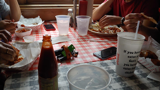 On my first night in Austin, I opted for Guss World Famous Fried Chicken. I decided to get the works and ordered a 2 piece platter (breast and wing). Plates include baked beans, slaw, and white bread. I also ordered a small side of mac and cheese, as well as a slice of their chocolate chess pie to try. The entire meal cost only $15. Such a good deal! The chicken is moist and has a subtle spicy kick too. The skin is crispy and the meat is very tender. Baked beans were good too, albeit a tad sweet to my liking. Mac and cheese was also good. Everything about the meal was on point. I also liked my chocolate chess pie, which in hindsight I probably shouldnt have ordered since I was super full after just the plate itself but I couldnt resist trying it since its a family recipe and raved by everyone. I didnt order it with ice cream since I was taking it to go, but the pie was very good. Its almost like a brownie and chocolate pudding infused into a pie. I would definitely recommend it! Since I ordered take out, I cant speak much to service except that the person who took my order was friendly and my food came out really quickly. If youre in downtown Austin, stop by Guss for some fried chicken deliciousness.