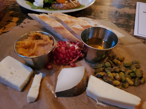 Order the Mussels and Fries! Dont even bother looking at the other entree options; trust me on this. It arrives in a big glass bowl: the mussels are floating in a zesty red sauce (ironically made with white wine) that you will want to lick up out of said bowl. Seasoned plump crinkle fries are on top. The "small bites" plate was a nice appetizer: cheese, olives (complete with little jar for the pits), pickled veggies and compote jam. If you order it and plan to share with even one other person, you should ask for extra bread. They now take reservations for more intimate (compared to the bar area) tables located in the back room.