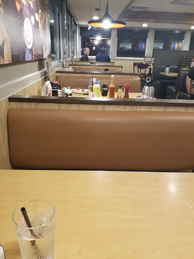 I went in at 9:30 PM with my boyfriend and sister and it took them a few minutes to even realize we had walked in. When they finally saw us and took us to our seats I noticed that almost every single table we passed was dirty and it looked like there were only four or five in use. It took them almost five minutes to get our drinks and another ten to get them and they didnt even bring them all out. When we were ready to order we had to sit there for another ten minutes until our waitress came back by to take our order. When we finally got it, almost 25 minutes later, it was bad. My omelet was cold, I didnt get the avocado I ordered, the tomatoes were hard, the broccoli was dry and mushy, and I had to remind the waitress that I ordered hash browns. The store was absolutely filthy. They left dishes at one table for at least 40 minutes after the group left, it looked like there was mold on the ceiling, and the crew was terrible. I understand being short staffed, I work in a restaurant, but when the manager (I assumed) has to go to each table and asked if someone has even been by there is something seriously wrong. Ive never been to that location before and I can honestly say I have no intention of ever going back.