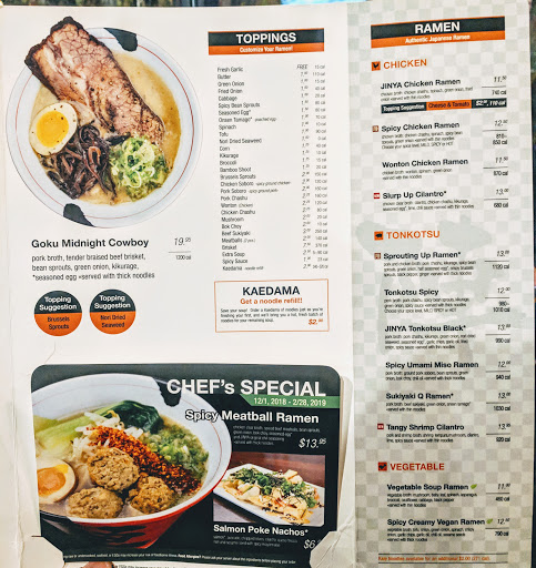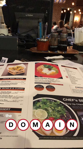 I do find myself a "fan" of the new Ramen shop in town, but there were some exceptions to keep it from a full 5 Star rating, but they earned the 4 stars very easily. I appreciated the location just on the edge of the Domain shopping and traffic areas. Its a great little spot to go in, get your ramen fix, hang with friends, and then go about your way... Inside it is a comfy community styled seating with swivel stools and a nice bar to hang out at. Just as you expect in Japan and other community eating cultures, so that was a pleasantry I personally liked in the atmosphere. Overall we had a great meal and the staff really did a great job in seating and serving and rechecking to make sure your drinks were full and the meal was satisfying. That was very much appreciated. In our group we ordered 4 different types of ramen bowls and 3-4 different appetizers, so we got a great perspective of all the flavors. We ordered: - crispy chicken - pork gyoza - Jinya Dynamite - Tonkotsu Spicy - Jinya Tonkotsu Black - Spicy Chicken - Jinya Chicken Ramen Notes on the above order: - crispy chicken was good - pork gyoza = was crispy and had good flavor - Jinya Dynamite = was more savory than it was "spicy" in my personal taste, but I am not sure if I would personally order it again - Tonkotsu Spicy = was "touristy" spicy in our opinion - Jinya Tonkotsu Black (heavy broth) = was good, but didnt have the same portion as everyone elses - Spicy Chicken = was "tourist" spicy and the waitress spoke to the cooks to get the hotter extract they keep in the back (and not on the tables) for us. That add much more heat! (props to the waitress) - Jinya Chicken = no complaints My only withdrawal of the fifth star came with the fact that when we all got our ramen, we heartily enjoyed our servings, but I quickly noticed that my portion was much smaller than everyone elses? Odd. I noticed that everyone else had their bowls filled to the brim with noodles and broth and mine was at least one inch lower than the others... without causing a fuss, I just accepted it as it was. It was a busy day (Saturday) and asking for a possible correction may have delayed our meal longer; so I ate my portion as served and had great conversation with those I was with. I honestly wish I would have had more or at least the same portion as others. I could not tell if the "heavy broth" bowls simply did not get as much or if they overfilled the regular broth bowls. A little puzzling, but still tasty. I will come back for everything here is tasty and I hope to try another different ramen bowl so I can experience a new flavor and taste. Additionally, as noted above, if it is not spicy enough for you then ask the staff to see if they can get you the spice that they use in the kitchen and not just the one that is on the table in front of you. It provides that extra kick that you desire.