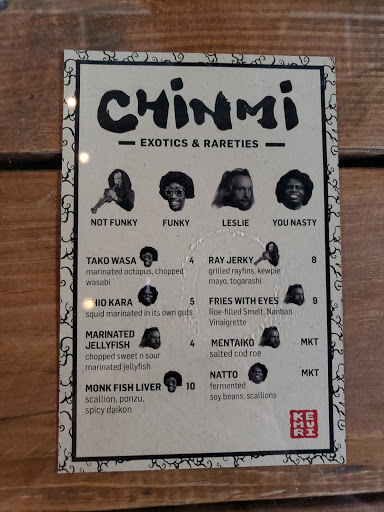Kemuri is a welcome addition to the Tatsu-Ya family -- if youre coming here for ramen, youll be let down. Kemuri is a tapas and more "experimental" culinary endeavor, meant to date the palate, take a date, or just decompress after work. The offerings and selection are varied and fantastically obscure, ranging from tried and true sashimi portions (while they last), to the adventurous "Chinmi" menu with exotic items such as "ray jerky" and "shio kara". Nothing here is a miss, but its definitely for the more "audacious of palate", and definitely worth a visit.