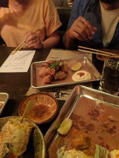 This is the best Izakaya Ive been to! Very impressive menu! Amazing atmosphere! The walls are decorated in a Japanese-Texan mashup that actually look good and not tacky. Must try: fried chicken balls, poke bowl, jellyfish, and cucumber w octopus salad! Note that they dont serve warm sake, just cold. Get the grapefruit sour drink! Very good and refreshing. You get to squeeze the grapefruit yourself!