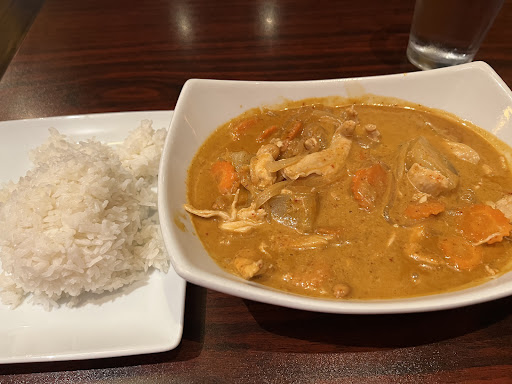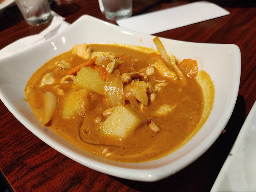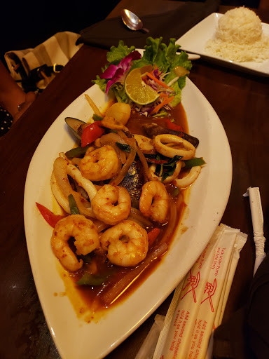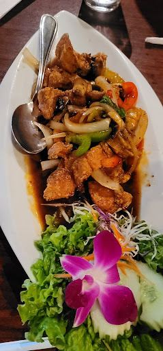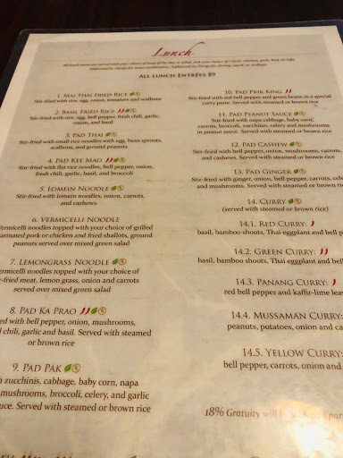 I have never been to the restaurant, as I generally order pickup, so I cant say much about the decor except that it looks like a great place to take a date. Has a romantic darkened kinda feel. I ALWAYS order the basil friend rice and have them make it "Thai hot" and they never disappoint. I would stay away from the chicken, as it is probably actually cat. Their beef is awesome, which is generally what I grab. Prices are fair for the area, considering it is downtown. For lunch the basil fried rice is about 8 dollars and well worth it. Some of the better Thai food in Austin, IMO (as long as you do not count the chicken).