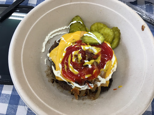 The prices were high before but no worries. It looks like they went up even more. $8.00 for the same burger you get at P.Terrys for $3.45 and thats not even with fries or a drink. My personal meal was $14.25 - Total ($15.43 with tax): $9.25 - Burger (added cheese and bacon for $2.25) $2.75 - Fries $2.25 - Drink I rarely bring up price unless I consider it absurd so I checked other places to be sure I wasnt just out of touch. For comparison the same meal at 3 other places $6.10 (-$8.15) P.Terrys #3 Combo $14.00 (-$.25) CheeseCake Factory Americana Cheeseburger and Soda $12 (-$2.25) Hopdoddy Classic w/Bacon and Cheese, Fries, and Drink Their food is very simple. You can see a person doing the prep-work from the dining area. They are usually making burger patties or cutting french fries. The burger bun is one size too small so gives the illusion that the meat is giant by comparison but is the standard .5lb (Not 2 .25lb patties). The majority of the time they are done a bit more well than I care for but not near enough to make a burger taste bad. (Thats hat creeks job). If I were reviewing the burger on taste Id give it a 3/5. It is very decent but not amazing. The dining area is set-up like a bbq eating hall. Lots of folding tables with checkered table cloths. It allows for bulk seating so everyone gets a spot but it has several down-sides. Here are the parts I do not like about this type of seating arrangement: 1. Sitting with strangers staring directly across at you while you both eat. 2. Condiments are in the middle of the table and usually shared between several groups at once. 3. Getting to and from your seat, for the bathroom, soda machine, or to pick up your food you will likely have to ask several people to move to get out of the table row as the chair backs are very close together when occupied. 4. Dealing with other peoples bad kids sitting at the same table as me. 5. Impossible to have a personal conversation. This your standard burger stand. They have burgers, fries, and shakes. There are a few other things on their menu but not worth mentioning. The price is absurd but there are few choices in the arbor walk shopping center. Here is a handy list of places to avoid while there(Arbor Walk): Tinos - Uncovered serving line makes for the top of food being dry every time. Confusing menu. Staff is unclear what the food is made of. Potbelly - Makes subway look good and serve side items in dixie cups. BJs - All the same crappy food they sell at Dave&Busters as an afterthought to the games is also delivered to this place. Masala Wok - They do not do anything well in here. All food is bad. Despondent staff. Mimis Cafe - Good service but not much here that isnt from your grocers freezer section. Mediocre. I had a bug (grasshopper) in my food at Chipotle once and I still think I would rather go there than the above mentioned places. Want a burger in this parking lot but only have $10? There is a pretty decent cafe inside specs that has comparable burgers to Mighty Fine with several more options and a much lower price.