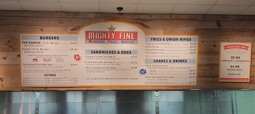 Mighty Fine indeed!!! This is a great burger joint. When you enter the place, you are kindly greeted by friendly staff. Ordering is simple as there are basically two options, the "Classic", which is the 1/2 pound and the 1/4 pound. The staff ask you what you want and they select everything on your own bag. Pretty simple system. I ordered the "Classic" with "Yeller" (mustard) and "White (mayo). I choose all the veggies with the option of grilled onions at no cost! Lastly, I added bacon for a little extra. The fries are the perfect size and are cooked in peanut oil (no cholesterol). I also think the peanut oil adds a nice flavor as these are really tasty fries. Regarding drinks, they have a lot of options. They have the regular fountain drinks, bottled beer, and delicious hand-dipped shakes and homemade lemonade! If you are looking for a great burger, I highly recommend this place....you will not be disappointed.