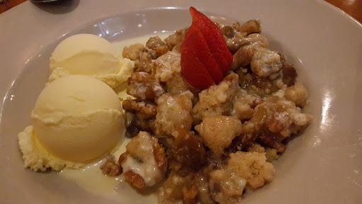 Overall great experience. Im not a fan of their appetizers. They only have two that Im interested in and those two both contain seafood - Im not often in the mood for a seafood appetizer. I typically get the half chicken - which is always tender and moist with a great balsamic sauce on the plate to accompany the mashed potatoes (picture submitted). Its enough food to share if going as a couple. The fruit crisps they offer for dessert are also large portions and I take half of that home for later. I dine alone often and the staff typically leave me alone and dont pester me every possible moment during dinner/feel the need to announce every thing they do which is nice. I dont drink liquor when I eat. However, a few of their brews are pretty tasty.
