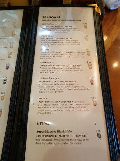 Been visiting NXNW for many years and was pleasantly surprised to see a few new items on the menu. Stout Stroganoff was a little salty but still delicious with a good balance of meat, mushrooms and mashed potatoes. The new Fish & Chips (Mon night special) was a great addition to the menu. The fish (Cod) tasted fresh and served with plenty of garlic parm fries. The half pound angus burger is one of the best in town. Get it cooked medium with bacon and Huntsman cheese (blue & cheddar blend) and youll thank me! Its $12.70 with bacon but enough to split with someone (suggest adding a side salad). The calamari hasnt changed, still a great appetizer to share. They now have fried oysters(!) but were out the day we visited. The new kale arugula salad is a welcome addition with tasty beets, sweet dates, corn, feta cheese and a light vinaigrette. I dont drink much beer but my husband can attest that their beers are always good (he gets his growlers filled there).