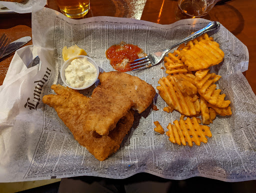 This place is interesting...it is going for that British pub vibe and has the decor. The menu is a bit all over the place w/american pub fare, brit pub fare, and indian curry options. After my visit here, I am still not quite sure what to make of it, but the service was great, the food good, and $2 Lone Stars all day every day is always fine w/me. I ordered the fish n chips (because I had to). I am a bit of a snob when it comes to my fnc prefs since I have been across the pond and had various variations (the good, the bad, and the ugly), but was ruined for anywhere else when I had the best of my life in Newfoundland. That being said, the fish n chips here ranks as "not bad". The fish was very fresh, but the breading was just a bit soggy and the fish not as flaky as I would have liked. It comes w/waffle "chips", which were excellent! I usually eat my fnc w/malt vinegar because most places tartar sauce is the bastard child of mayo and bad intentions. The tartar sauce here, however, was rather tasty, had great consistency and complemented the fish well. I will say, while it was a novel and just a bit kitschy, I kinda loved the newspaper lining for the fish n chips basket. Sometimes its the little things. I can see myself coming back and venturing to try their burger and eventually the curry, but happy to see a bit of "wee Britain" in Austin.