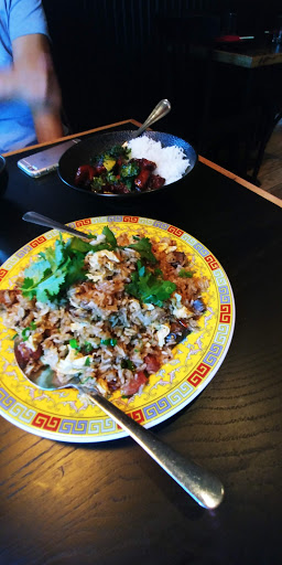 Awesome place for family-style dinners, because youll want to try it all. I came with a group of six and we tried all of the appetizers and most of the entrees and desserts. I really loved the fried rice and the pepper chicken. Considering how new the place is, the service was very good. Because we were eating family style, we had a constant stream of food coming out from the kitchen and never went hungry. I really love the decor and atmosphere, but it is pretty loud and difficult to carry on a conversation.