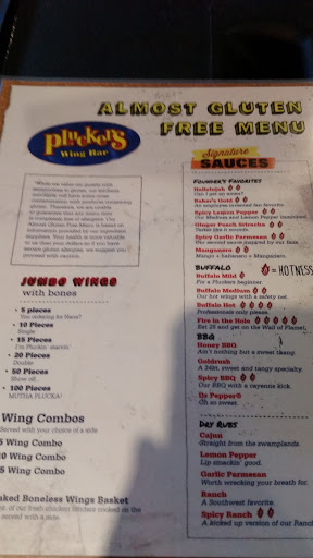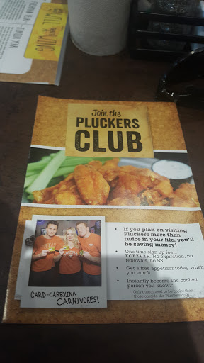 The food was not very good. It is nowhere near the quality or flavor of Buffalo Wild Wings. Im happy I used my free wing coupon from the football game, because otherwise my bill would have been over $20.00 for 2 orders of 5 wings and two sodas. The service was absolutely terrible. It was by far the worst I have ever received at any restaurant. It took over ten minutes to get a soda refill and every question I had was met with a very condescending tone and answer. The waitress I had was lucky that they have mandatory 17% tips on groups of 6 or more. I was also very taken aback by the rules that the membership club places on you--such as only one person per table being able to get points off of everyones meals, even if you are paying separately. Do not sign up for the Pluckers club, it is a total waste of money unless you plan to go every weekend (which I would also advise against) and I felt very bad for my friends who did and were tricked. In short, stay away and save your money.