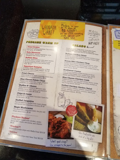 Ive tried pluckers a few times and every time i had a bad experience. The food is extremely overpriced, and chances are the food will come out dry or cold. Ive had cold wings, dry boneless wings, and a dry chicken cheesestake.. And when i asked for more sauce because the food was SO DRY THAT I COULDNT EAT IT, they CHARGED ME for the sauce!?!?! This place has no idea about customer satisfaction!! One time my server forgot to put in my order for 45 minutes!! i just thought that they were really busy and the food would be out soon. Turns out the server FORGOT TO PUT IN MY ORDER .. FOR 45 MINUTES!!! Most of the servers there are college drop out material! Big Bites is sooooo much better. Im going there from now on!