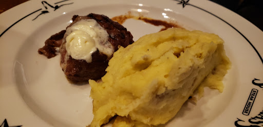 Less than impressed... 1. Steak Butter? WTF?!?! What is with this, it this an Adkins thing? GROSS. 2. Sweet Potato, they serve it but dont have a clue what they were doing, it was not cooked or served properly. I think their cooks need to go over to the Roadhouse and see how it should be prepared. 3. Onion Strings, one of out party ordered as their side and got the bottom of the barrel, all cold little bits of greasy breading. 4. Steak itself, was average, nothing special at all. 5. Service was slow, never once got drinks refilled, had keep bugging the waiter for more bread.
