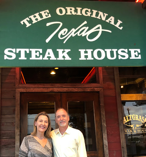 Wed been let down a couple times at the competition but after our first visit to the Saltgrass Steak House, were hooked! The food and service were amazing. The atmosphere is comfortable, rustic and we felt like we belonged there. Of course, we ordered steaks! I like mine rare and my wife likes medium well. They presented both steaks at the same time perfectly cooked to our liking. The garlic mashed potatoes were delicious and the desserts were sinfully delicious! They are priced just right too! I dont think we could find a fault on the first visit at all and will surely return and try other menu items. Well done Saltgrass!
