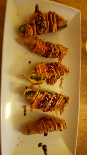 I come here for happy hour and the service is prompt, and the sushi is fresh. Ive also had their tempura udon and it comes out in a little cast iron pot with a handle, as well as a basket for the separate fried goodies. Recently, theyve added two rolls to the menu: the Austin roll and the Osaka roll. The Osaka roll instantly became a favorite of mine! If I remember correctly, it has white and red seared tuna, jalapenos, cucumber? avocado?, and a cilantro-based sauce on top. It might sound odd, but trust me, it is delicious!
