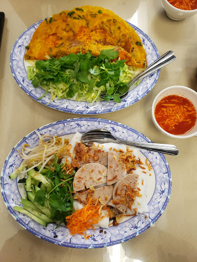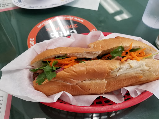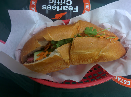Tiny little awkward strip mall location, disastrously closed on Tuesdays. Theres your negatives. Everything else is positive. The food is tremendous, highlighted for me by the incredible Shrimp and Yam Fritters. They might be my favorite thing to eat in all of Austin. Crispy, Crunchy on the outside, soft and pillowy inside, with bits of shrimp scattered throughout. The obligatory fish sauce based dipping sauce makes them amazing. Also really great here are the banh mi. Easily the best Ive had in town. They are served warm, with perfect bread. They are a good bit pricier than other spots, but worth every penny. The service here is always warm and friendly. The noodle soups here are not the best in town, i usually focus on other things here. The kumquat lemonade is also a winner. Be sure to buy a couple of cream puffs at the register to snack on later.
