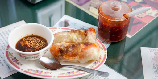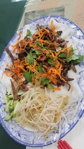 This will be a running review as the food isnt here yet but my experience is unparrallelled so far. My server was out front smoking when I came in. He poked his head in the door and yelled in Vietnamese and a lady from the back yelled back. She came out to take my order and spoke no English at all. No problem at all, we worked our way through and things are going smoothly. The only other table in the place is having a discussion about the differences between milking the venom from a cobra versus milking the venom from a rattlesnake. So far so good. The food is out now. The spring rolls are great. I got the ones with pork. I got the rice rolls with more pork. They are more substantial than the spring rolls and are topped with pate and fried onions with bean sprouts and julienned cucumbers. There is a nice and spicy dipping sauce with it. Great stuff. The snake people left. This is really good. I will definitely come back.