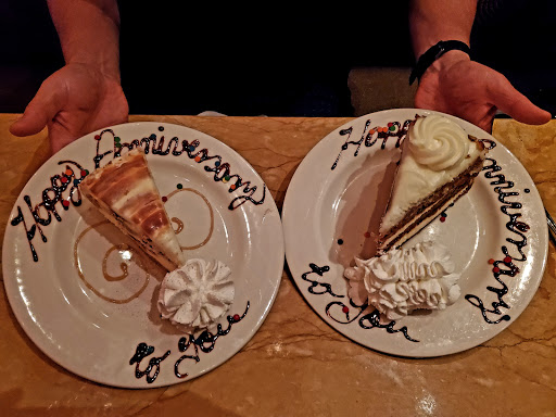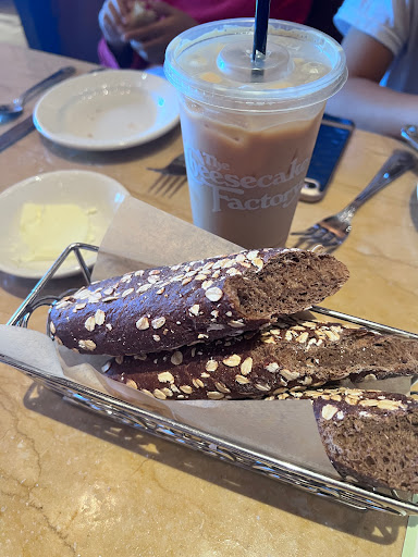 My bae and I had a fantastic evening at the Cheesecake Factory. Our experienced server, Gabriel, promptly supplied us with frigid ice water after we waited a whole two minutes to be seated. Gabriel stayed calm and collected and appeared very knowledgeable about how items on the menu were prepared. I was very disappointed that the loaded potatoes on the snack menu were not available without bacon, but Gabriels soothing voice guided me to the stuffed mushrooms as a viable substitute. Bae ordered some exotic chicken dippers dish with cilantro sauce and that was also tasty. For dessert, Gabriel helped us narrow down our choices to the white chocolate blueberry and carrot cake cheesecakes. Both were delicious with appropriate portions. My only complaints were that our snacks and my latte were brought out by randos and not Gabriel, and also that Gabriels enthusiasm while singing "Happy Birthday" to my bae seemed to be waning at times because it was 10:30 pm. She enjoyed the miniature sundae despite being thoroughly well fed. In conclusion, Gabriel should probably get a raise and we had a delightful evening.