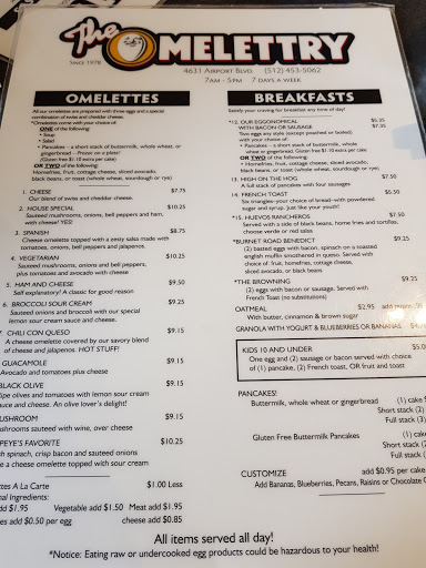 I went here while traveling for work, it was over a weekend so I was looking for a good breakfast place that was local to Ausin. We decided on the omlettry, and it wasnt bad, really, but we were expecting much more. It is an old school diner, accepted cash only, which is just annoying in thie day and age, unless you are getting something really special. We didnt feel we got that, especially from the gingerbread pancakes, which looked and tasted like something you make at home when you dont know what you are doing. They were flat, and just kinda bland. So while the food was fine, Id rather just go to a place that offers decent food with a better atmosphere.