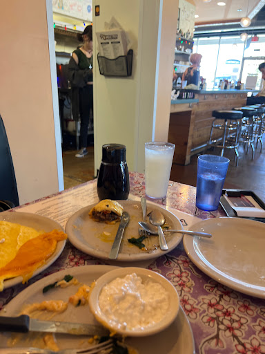 Ive never heard of Omelettry until I came here for brunch with a group of friends. Based on the restaurants name, I knew I had to order an omelette. I ordered the Popeyes Favorite which was delicious. I loved the sour cream on top which made the omelette have a creamy texture. I got the omelette with the gingerbread pancakes. The pancakes are unique in flavor, but I think Im more of a normal buttermilk pancake kind of guy. I think $10 for an omelette and two pancakes is a little pricey, but the portion size is definitely worth the money. There is parking at the side and back of the restaurant. This place is CASH only...and you pay up front after you dine.