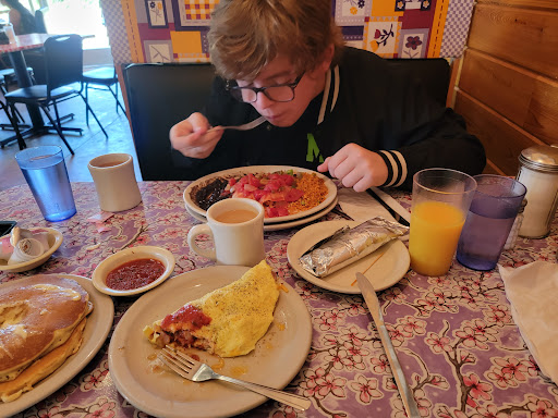 First of all, CASH ONLY!!! (They have an AMT machine by the cashier) They have parking lots in front of the building as well as the side and back of, but because of the popularity, their parking lots tend to be full and I saw people parking on the side of the roads (in front of some peoples houses). Went there on one Saturday morning after 9. I heard there is usually some wait. We (2 people) were seated less than 5 min. Service was pretty awesome and very attentive, and according to their sign, all waitresses/waiters serve all customers and they split the tips, so you can ask for any help to any staff. Their coffee wasnt the greatest and it was more like the dinner coffee. They had milk and powdered cream on the table but didnt carry any Half & Half. Their Omelet "CHILICONQUESO" had lots of cheese inside and on top of, but wasnt bad -- probably wouldnt order again, though. Every bite had some chili spiciness. Buttermilk pancakes that came with the dish was delicious! Would love to eat their pancakes again. Their Breakfast "Our Economical" was very tasty. Bacon was thin but flat and crispy. Yum! I felt their home fries could use a bit more seasoning (like Italian Seasoning or parsley) but was good. Wheat toast was pretty good,
