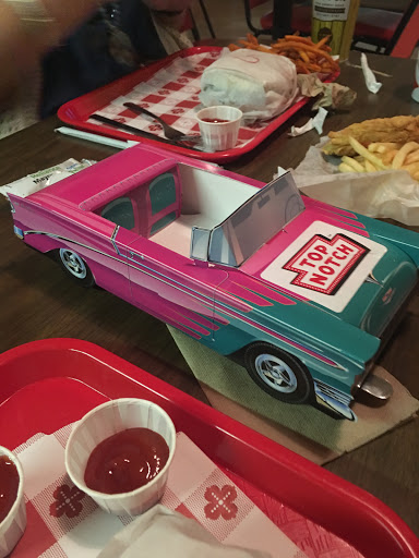 Absolute perfection. Greasy heavy fattening food that doesnt pretend to be anything else. And it shouldnt. My boyfriend, vegetarian, loves their veggie burgers. I believe they fry them, darn good. Top Notch does American food right. Usually, I order their fried chicken dinner with onion rings and tater tots, get their onion rings, youre welcome. Honestly, I could eat that meal several times a day for the rest of my life -- which wouldnt be long. But, it would almost be worth the morbid obesity and eventual heart failure. Although, since they now serve beer, my liver might fail before my heart got the chance. It would be a fun race to the finish. My friend told me the dining room decor hasnt changed a bit since her first visit fifteen years ago. It is a bit thrift store and a lot Texas. The staff was friendly and the food came out fast. Ill be going again... and again... and again.