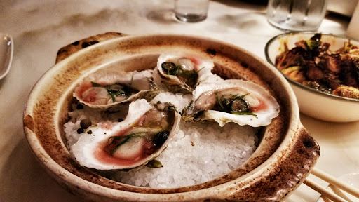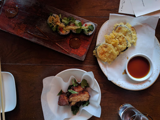 The scene: Bright, clean and modernistic style while still having that "homey" feel. I have to be honest, From the last time I was here the mood and food has changed a lot - in good ways and bad. - In 2010, it was still new and only a few months old. A group of 5 of us met up for dinner and ordered dishes to share. The dishes were small however since we were sharing it was unnoticed. Each dish gave a new idea to a food item and paired with things you wouldnt think of eating together. The group left extremely full and incredibly pleased with our dinner. - A few days ago, I had to get reservations and was still met up with a wait to get a seat. The place was PACKED, mostly due to Paul Quis recent and well deserved fame. The dishes were smaller and it seems the prices on everything got higher. While the food was amazing and I was happy with the experience, I left the place hungry. Good for: ham & eggs sushi roll - (or most of their inventive rolls) - This one was a new one for me, pork belly in a sushi roll? The egg yolk/custard and sauce paired extremely well. The sauce was extremely delicious and the roll had a slight spice to it. Must have: Their special/daily items - These chefs come up with whatever is best for the season and invent up a new twist or look at the dish. Dessert: The dessert is what I would come back daily for. Back in 2010, all the desserts they had I was allergic to (no caffeine/chocolate/coffee or tomatoes) yet the waiter was insistent that I should be able to have something for dessert too. Not only I got a off menu dessert (for free - I guess they felt bad) but it was the hit of the table. One of the desserts I couldnt have I was able to nibble off parts that I could eat. Tomato sorbetto with goat cheese puree and a cheddar biscuit. The cheddar biscuit was SUPER thin with a strong cheddar taste. The goat cheese was to die for, I could of eaten that on its own. Veggie review: While they have a small selection of sides and a roll or two, I would not come hungry. Dont forget to ask the server if they use fish sauce to cook their dishes, the brussels sprouts tasted like it had some cooked with it. Monies: In 2010, our group split the bill and for the boyfriend and myself we paid $80. Now, youd be extremely lucky to leave under $100 per person and less of a chance to leave full. While the food was amazing, Im not sure whether the price tag and wait is worth it. Maybe for those special/try new food moments. When they first opened up it was a great dinner experience, now with their fame its more of just a great experience. Dont get me wrong, I would recommend anybody to go there - just dont forget to pick up a sandwich beforehand.