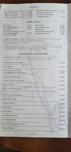 The hot and sour soup is amazing best I have ever had. Ive eaten here on occasion for years and the food and service are always excellent.