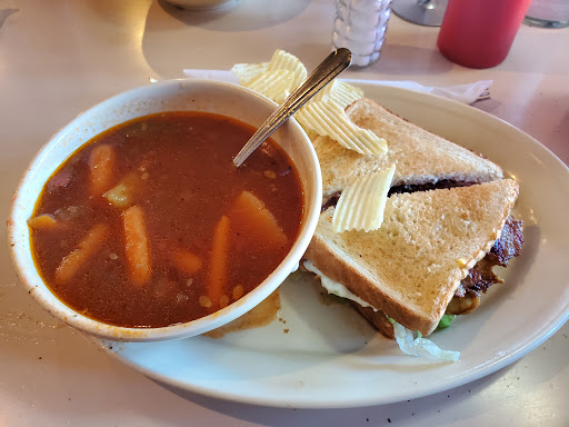 Terrible beef vegetable soup.. water taste. Bacon on BLT so crispy it broke into many pieces. The chicken fried steak cost $13.50.