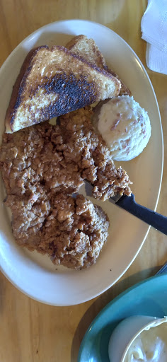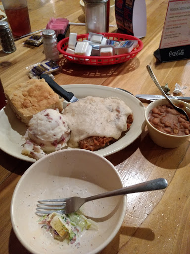 Chicken fried steak very tough, and hamberger steak is just a very well done hamberger patty with gravy on it. Today was not their best. Food in general is usually good.