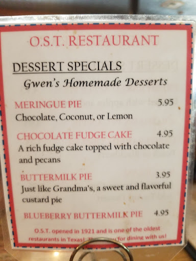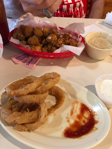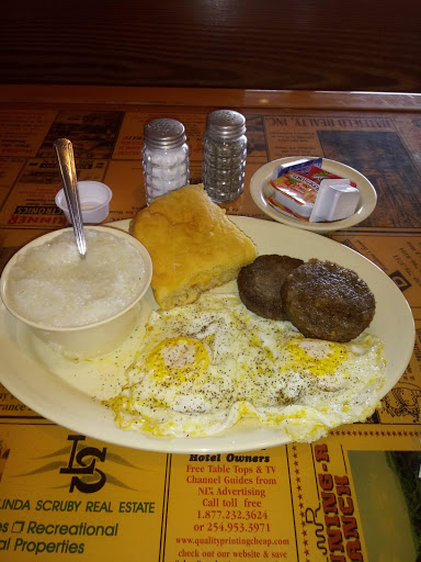 Good food, at least the breakfast. Its nice to have lots of options on the menu. The kids loved the saddle bar stools. They have a Sunday morning buffet with chicken fried steak and chicken. Both are great tasting. They also have great sandwiches, breakfasts, fries and onion rings. They only thing we havent completely loved is the lemon meringue pie.
