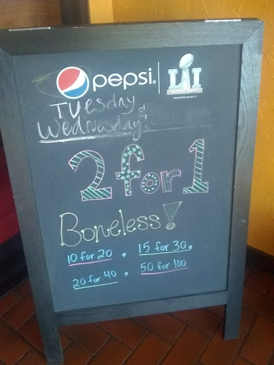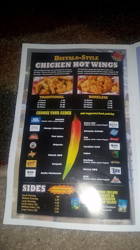 The food is ok. Wings came out slightly over cooked. Sauce was on the bottom of the ish instead of on the actual wings. Blue Cheese and Ranch dressings are watered sown and thin. Its ok for a quick meal, but thats about it.