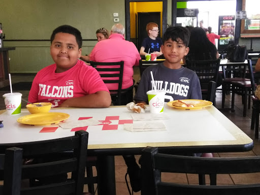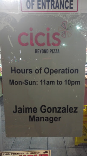 Lack of customer service. Food wasnt good. Nor was it actually warm. Went around 530pm, and the lady at the front complained that she had been there too long that day (said she got called in at 2pm). There were so many tables that were dirty. But, while we were there for almost 2 hours, no one came and cleaned them. Quite a surprise! Cicis used to be the place to go for buffet pizza. But I think we will take our business elsewhere.
