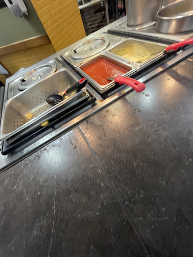 Horrible! Sticky Chairs and floor. No Pizza ready. I waited 20 minutes but couldnt get back to get any because the flow of ppl waiting would snatch it. No one was wearing gloves to prepare food. They had One person trying to making Pizza when they normally have 5 !! Messy counter top. Poor employees doing the best they can with the little help they have. The cashier had to stop and help the pizza maker because he couldnt keep up with the demands. Ice over flowing in the soda dispenser. No lids. No pasta. The manager should be ashamed! Pizza is normally good but this establishment is being run VERY POORLY! For a LONG time now! I give it no star at all but I cant post this unless I give it at least one star! I asked for my money back and will not return.