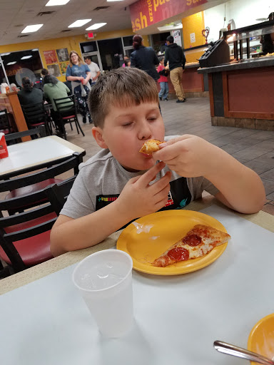 Pizza was hot and decent, we did get there as they opened, but the inside just isnt as welcoming. Boxes holding ceiling tiles on the counter. It just looks ran down on the inside. The tvs that once had cartoons and sports, no longer work. Soda machine is rough looking, the once clean and bright arcade looks rand down and dirty. Its just not a family fun type of place any longer.