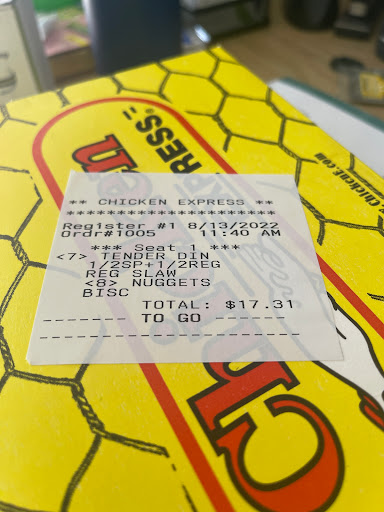 Ordered 7 tenders with ranch dressing. Woman came out with a box, "7 tenders with ranch dressing! :)" so i was pretty convinced they could get even that right. Inget half way home, finally cave to hunger, to find no ranch dressing anywhere, and my roll smashed on top of the gravy container. Thanks Chicken Express. Customer service at its finest.