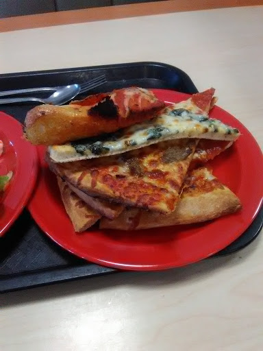 At their buffet I had a salad and I had them make a custom meatlovers with green pepper and onion. As for the meat, that included pepperoni, Italian sausage, and ham. This was on a nice thick crust brushed with garlic butter. I shook some parmesan cheese and crushed red pepper. Great pizza! Papa Johns cant touch it. I kid you not. I also highly recommend their spinach Alfredo and chicken parmesan, which I also had. I do wish this location would bring back their salt shakers instead of the packets and I wish they would return the meatlovers to the buffet for all to enjoy.