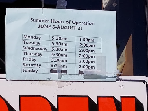 | Working: | 5:30AM–1:30PM 5AM–1:30PM 5AM–1:30PM 5AM–1:30PM 5AM–1:30PM 5AM–1:30PM Closed |