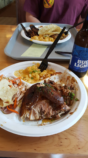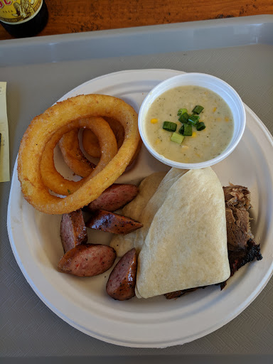 Brisket - 4.5 stars Reg sausage - 3 stars Turkey - 4 stars Pepper jack mac & cheese - 3.75 stars Squash with greens - 3.75 stars Creamed corn - 4.25 stars The brisket was lean and yet still moist and tender. I favor moist brisket. My wife leans towards the lean side. We both agreed the brisket was excellent. They carry regular and jalepeño sausage. We opted for the regular, as my wife doesnt do spicy. The black pepper in the regular was so powerful the regular was too spicy for her. While not too spicy for me, the black pepper overpowered any flavor the sausage may have had. The turkey was very tasty, but not spectacular. My wife really liked the pepper jack mac and cheese. I thought it was ok. We both liked the squash with greens, but it would have been more enjoyable had it not been greens with very little squash. The creamed corn was another excellent dish. The prices werent expensive. My wife felt we got good value for the meal, I thought it was mildly overpriced on the quality vs quantity vs price scale. That said, I will definitely return. I think Ill try the brisket nachos next time. The looked fantastic.